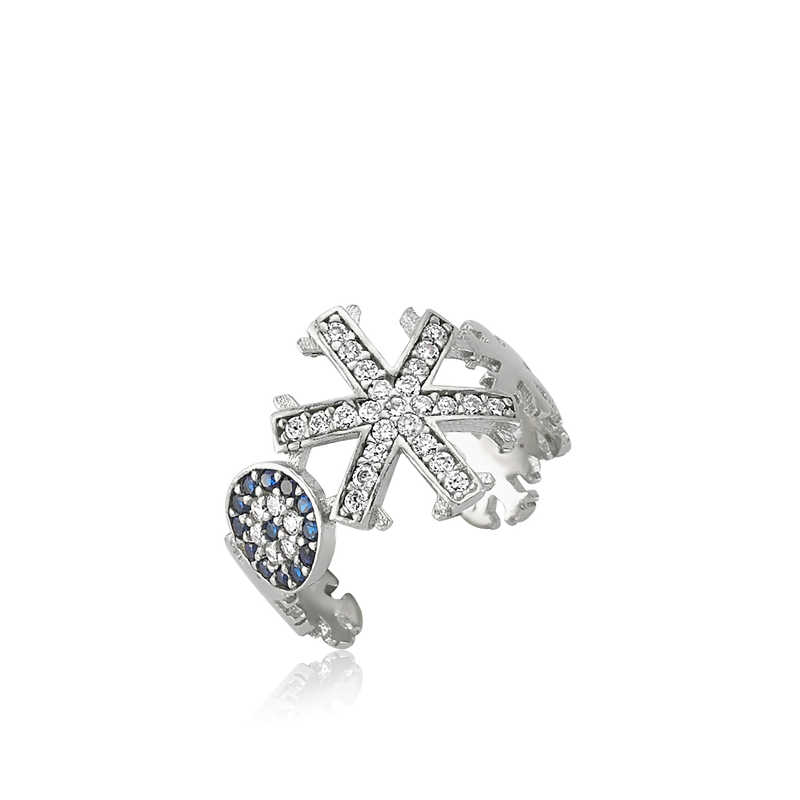 Gümüş Nazarlı Kar Tanesi Ayarlamalı Bayan Yüzük