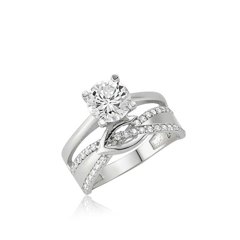 Gümüş Tek Taş Yarım Tur Bayan Yüzük
